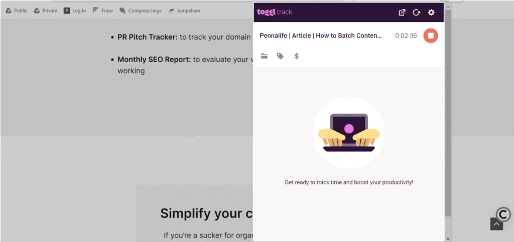 Toggl Track tracks the time spent on different tasks and projects. You can understand how you spend your time and optimize workflows for better productivity. With this extension, you can start and stop timers directly in your browser, categorize your entries, and generate reports.