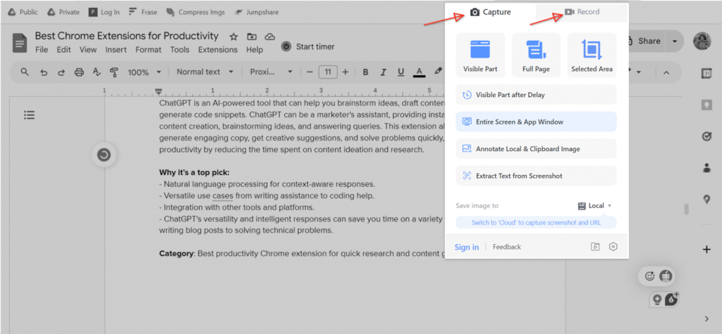 Category: Best productivity Chrome extension for screenshots and screen recording.