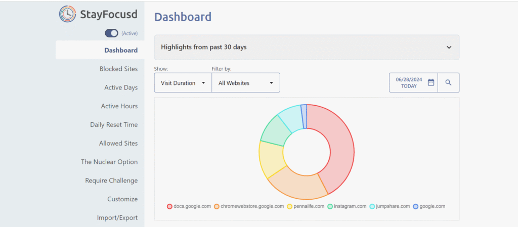 - It has a personalized dashboard that shows analytics for visited websites and your duration within the last 30 days