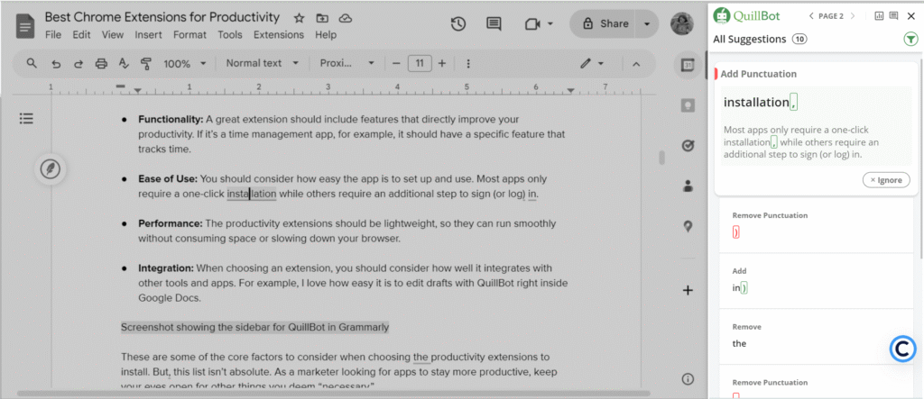 - Integration: When choosing an extension, consider how well it integrates with other tools and apps. For example, I love how it’s easy to access different extensions right inside Google Docs.
