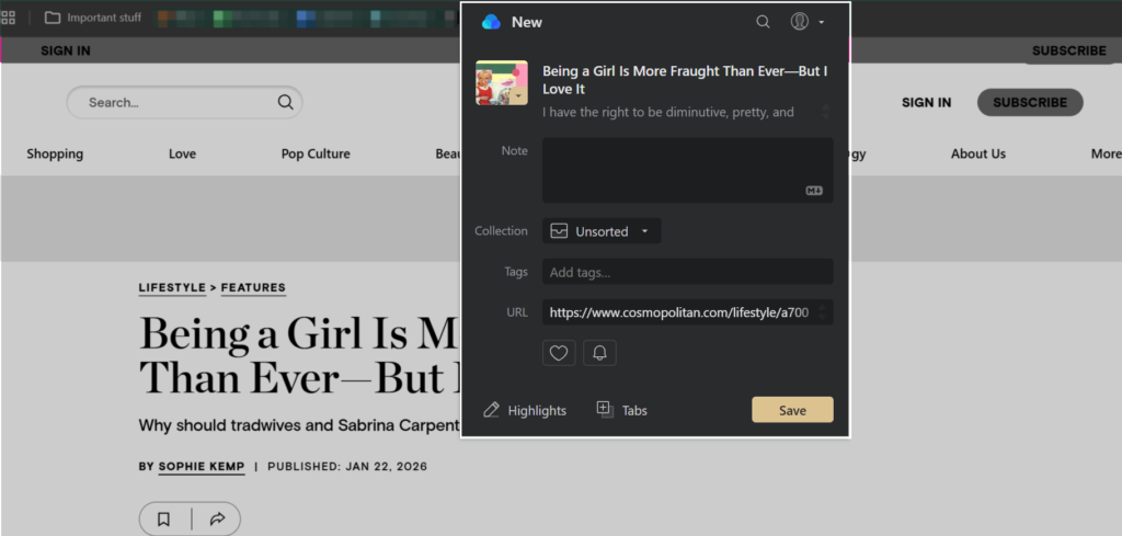 I used the Save to Pocket extension before they shut down. Now, Raindrop is my latest favorite alternative. It lets you save blog posts, resource pages, videos, images, and web pages you’d like to bookmark for later.