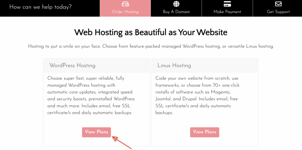 1. Click here to go to the Lyrical Host hosting page. Then, choose WordPress hosting.