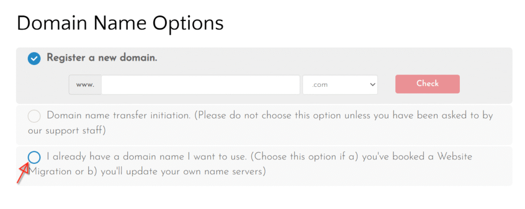 3. It takes you to an interface for domain name options. Enter your domain name.