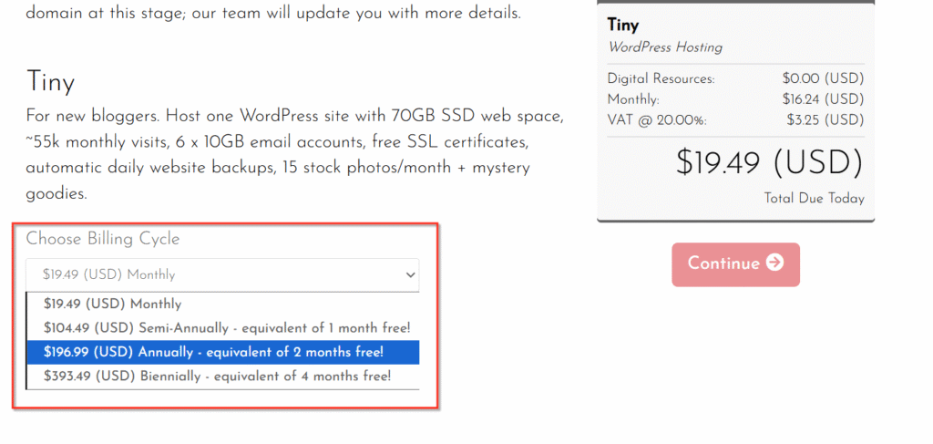2. Choose the plan you want, whether Boss, Mighty or Tiny. You can change the currency from the left sidebar.